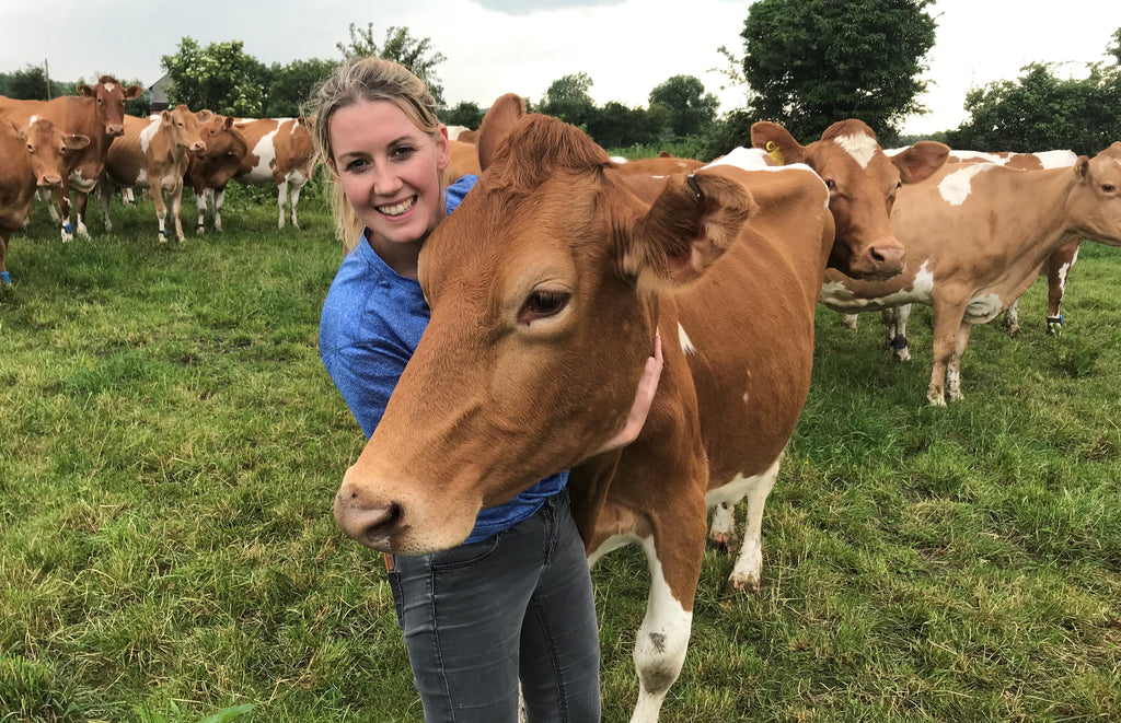 All their organic Guernsey milk is produced at Wood Farm, a 350 acre mixed arable and livestock farm. They have 120 Guernsey cows producing milk and 60 young stock waiting to enter the herd when they reach 2 years of age. They operate a system that aims to maximize animal welfare and freedom. The cows are kept outside grazing grass during the spring, summer and autumn and are generally only kept inside when it is too cold or too wet which is when they choose to be inside. During the winter, all the cows are bedded on a deep litter straw system which allows them the freedom to carry out natural behaviour which is not always possible with more conventional cubicle systems.